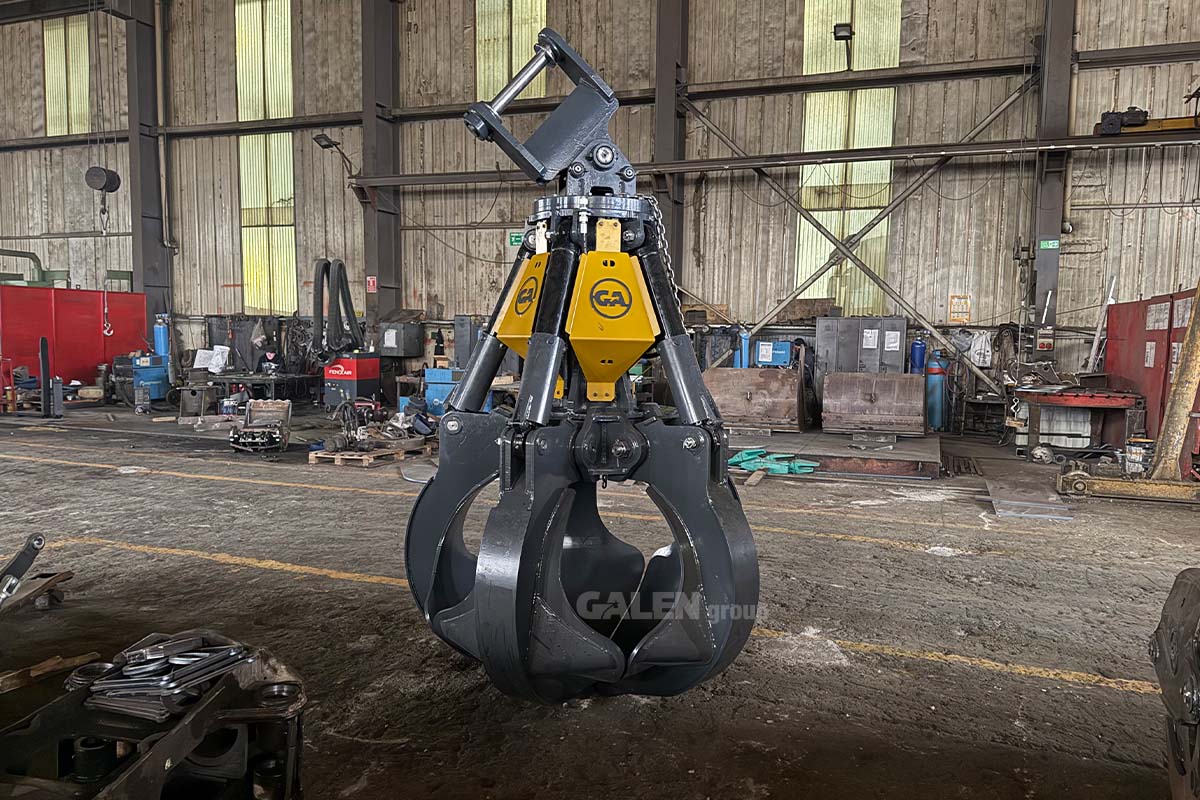 The Galen polyp attachment is among the toughest grippers on the market today. The structural geometry and long arms of the forks provide tremendous clamping force. Bushes and pins are huge. The rollers are hydraulically padded. The solid end stops both in opening and closing, directing the most violent impacts in the solid frame. The assembly is very precise and accurate. The combination of these features makes this line suitable for the most modern and high-performance material processors.